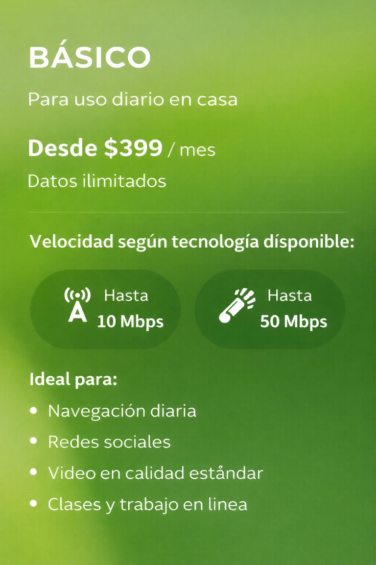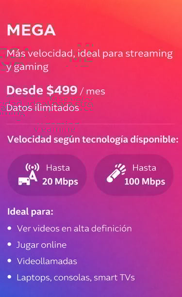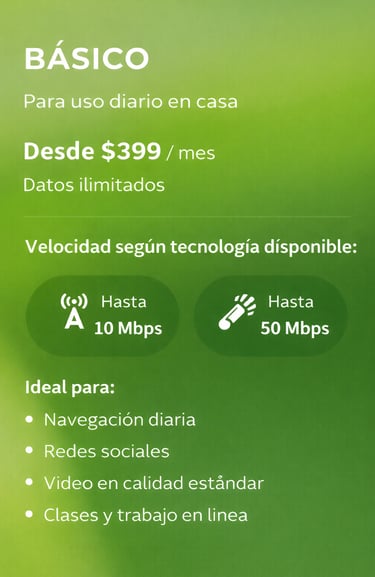 Ofrecemos servicios de internet por radioenlace y fibra óptica en hogares, negocios, zonas urbanas y zonas rurales. Conéctate con nosotros y disfruta de una conexión confiable.