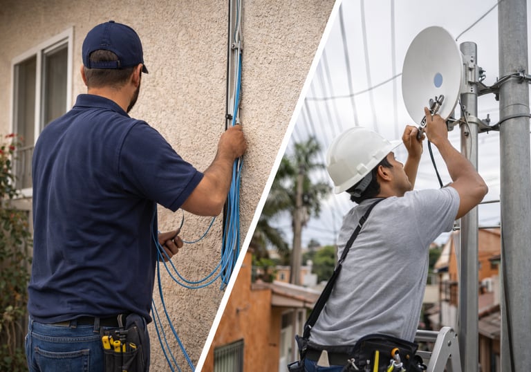 Diseñamos la conexión según tu zona: fibra óptica donde llega, radioenlace donde no.